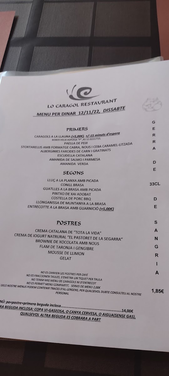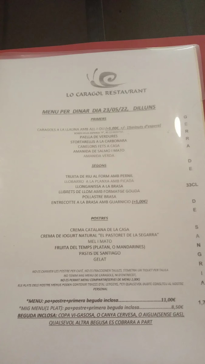 Welcome to Lo Caragol, a hidden gem nestled in the charming streets of Lleida, Spain. Located on Carrer de Sant Hilari, this delightful eatery specializes in bringing the heart of local cuisine to your table. With a friendly atmosphere and an inviting menu, Lo Caragol serves as a canvas for traditional Spanish flavors, notably showcasing the beloved dish of Lleida: snails.