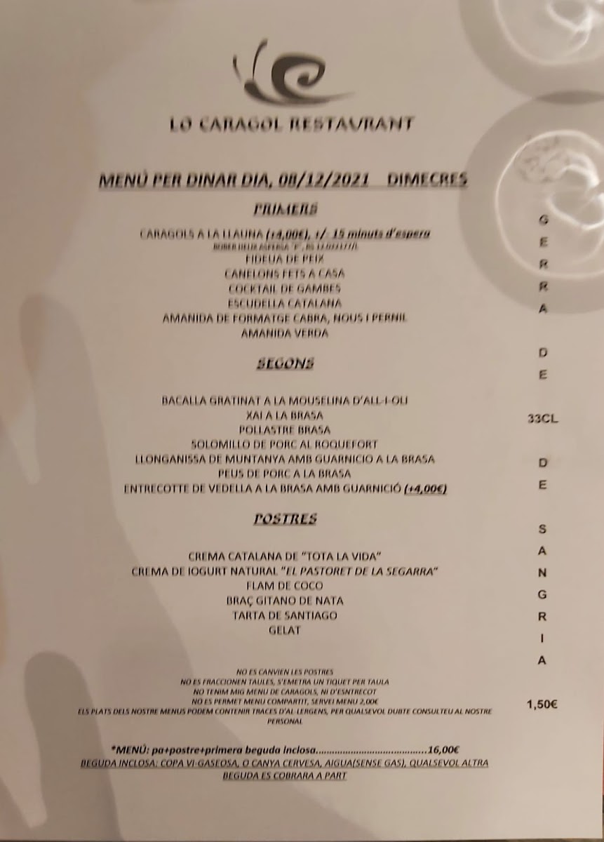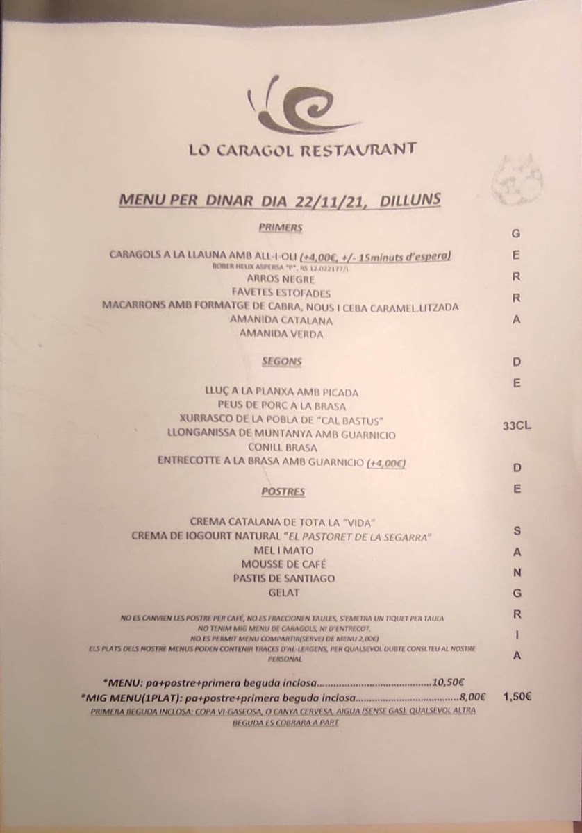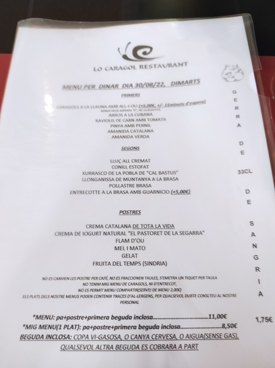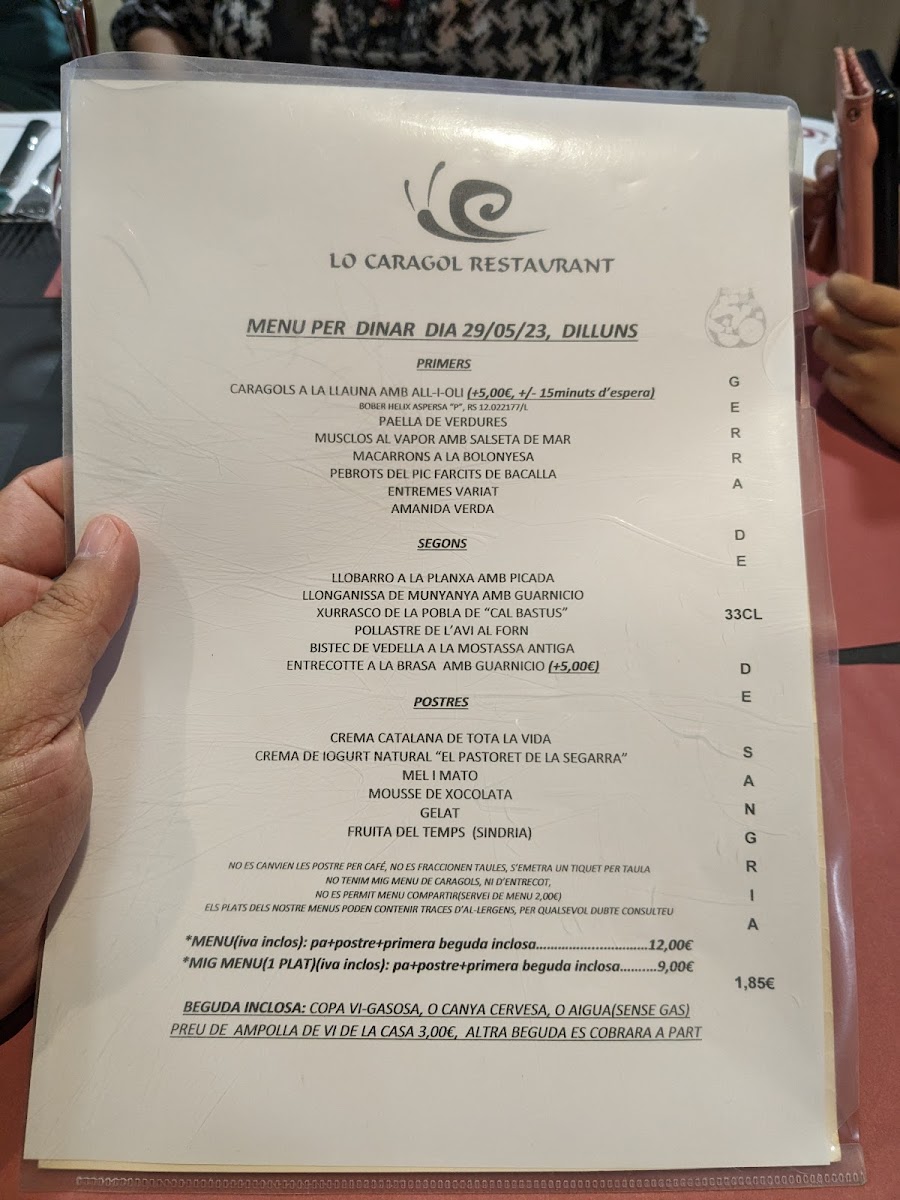 “ A cheap and nice menu, with lots of options including lleidas most beloved dish, snails ”